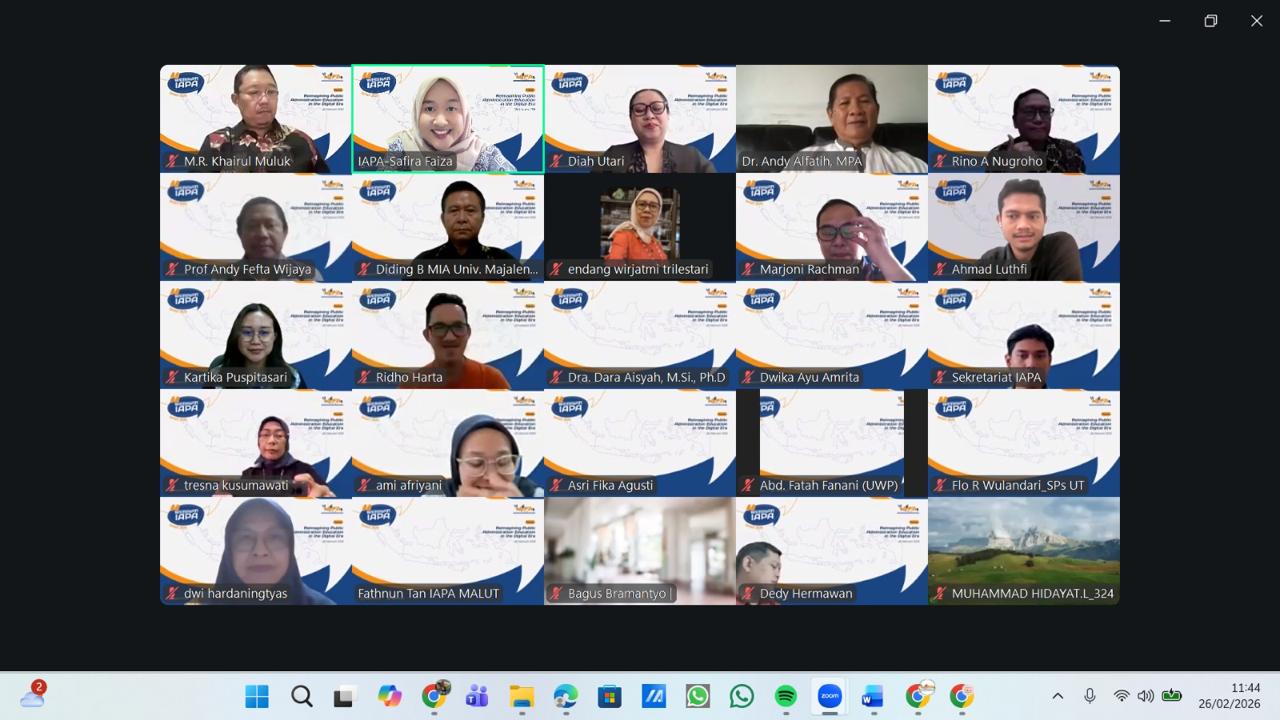 Indonesian Association for Public Administration (IAPA) kembali menunjukkan komitmennya dalam penguatan pendidikan administrasi publik melalui webinar bertajuk โ€œReimagining Public Administration Education in Digital Eraโ€ yang diselenggarakan pada Kamis, 26 Februari 2026. Forum ini menjadi ruang refleksi sekaligus proyeksi masa depan pendidikan administrasi publik di tengah derasnya arus transformasi digital dan perkembangan kecerdasan artifisial (AI).
